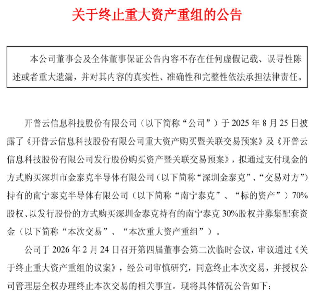 多重现实压力之下,这场备受市场关注的跨界并购最终止步。可以说,这既是半导体与存储行业周期波动、估值重构的缩影,也折射出当前上市公司在并购扩张中愈发理性的风险考量,为同类资本运作提供了现实参照。