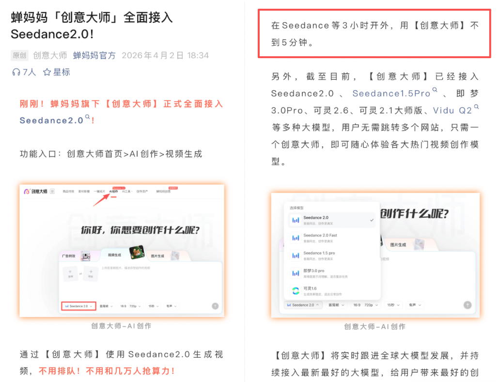 但商业逻辑同样清晰。按能力分层、按风险分级,本质是筛选用户。有资金体量和合规诉求的机构,才是火山引擎真正想服务的企业客户。中小团队并非被驱逐,而是被推向已对接 Seedance 2.0的平台方去接入。比如字节生态的服务商蝉妈妈就率先成为“分包商“。整个生态的利润分配,由此被重新组织了一遍。