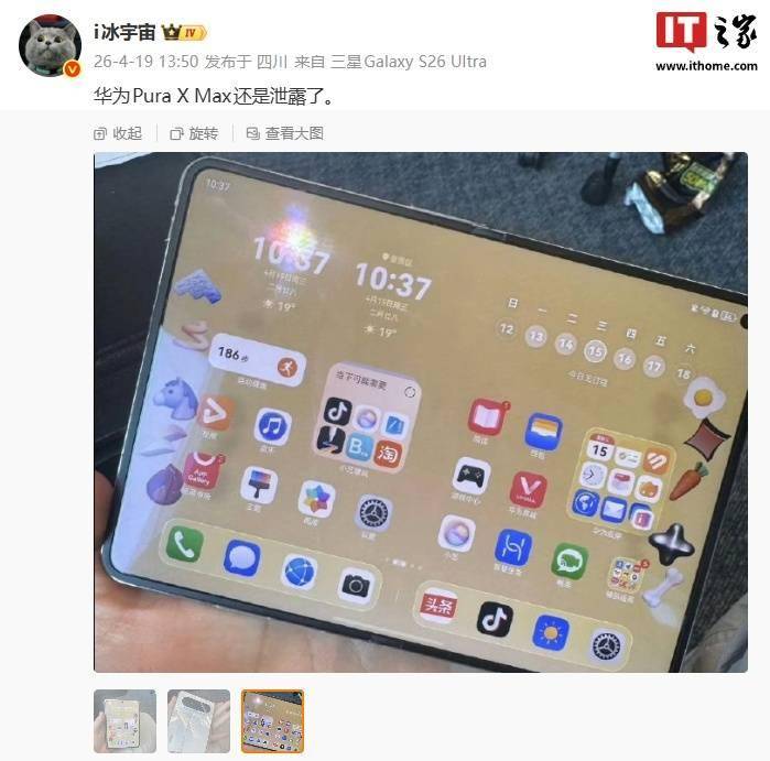 3、华为 Pura X Max 横向阔折叠手机真机曝光,展开就像一台小平板