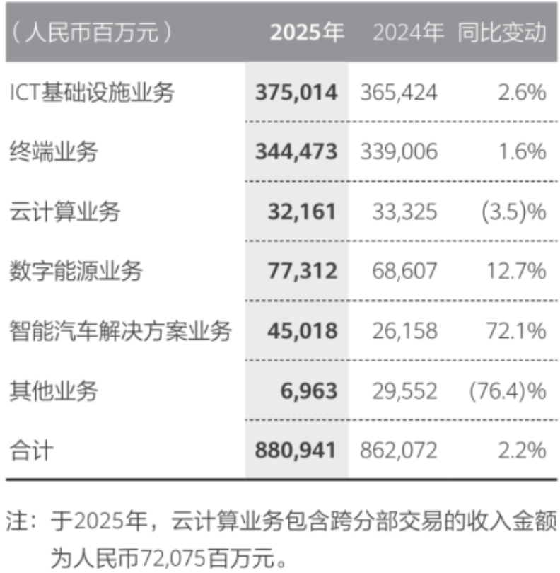 不过,年报注释里藏了一行小字:如果算上内部跨分部交易(也就是华为其他业务部门买云服务的钱),华为云的总收入是720.75亿元,对比去年同期的688.01亿元,仍是正增长。