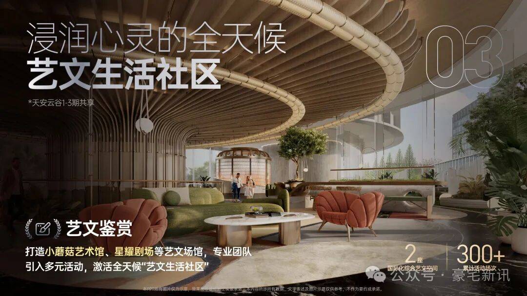 艺文鉴赏:全球艺文交织的小蘑菇艺术馆+先锋共创的星耀剧场+全景沉浸体验的5D光影宴会艺术中心。