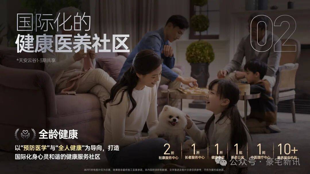 另外,天安云谷自身也以“预防医学”与“全人健康”为导向,打造国际化全龄健康医养社区,实现从日常健康管理、应急救护到诊疗康复、养老照护的全生命周期守护。