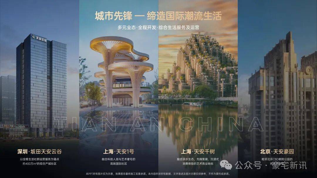 城市先锋:集团在北京、上海及深圳均有深厚地标开发经验,例如:上海天安一号、上海知名地标建筑“天安千树”、北京的天安豪园;