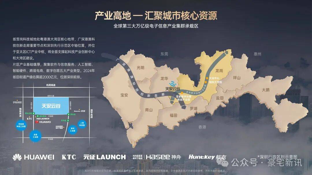 三大科创板块交汇:坂田汇聚了广深港创新走廊、梅观创新产业走廊以及坂雪岗科技城三大科创高地。