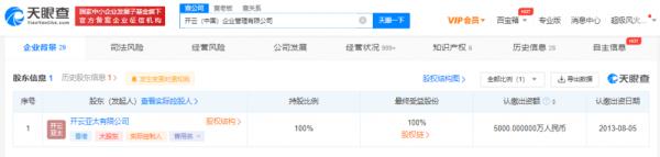 开云(中国)企业管理有限公司成立于2013年5月,注册资本5000万人民币,法定代表人为蔡金青,经营范围包括投资经营决策咨询、运营管理及市场营销管理、资金及财务管理、技术支持及研究开发、员工培训与管理等,该公司由开云亚太有限公司全资持股。
