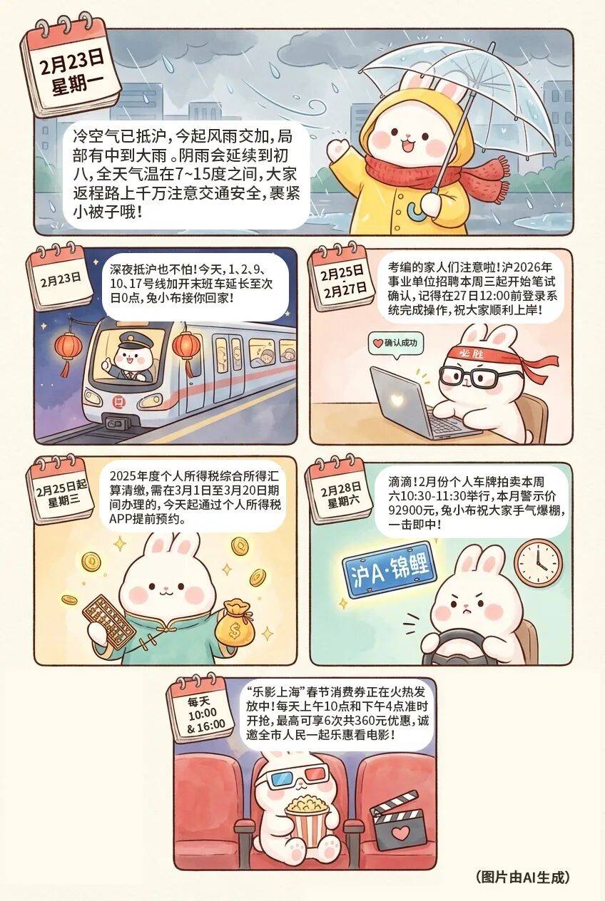 冷空气已抵沪,今起风雨交加!2026年第二轮上海市汽车以旧换新补贴摇号报名活动本周一开启,沪2026年事业单位招聘本周三起笔试确认,2月份拍牌本周六举行……本周还有哪些大事?速看本周提示↓