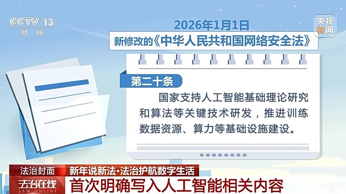 像这样的创新应用,正是国家政策鼓励的方向。2026年1月1日,新修订的《中华人民共和国网络安全法》首次明确写入了人工智能的相关内容,其中第二十条提出:“国家支持人工智能基础理论研究和算法等关键技术研发,推进训练数据资源、算力等基础设施建设。”