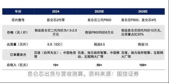2026年年初正式上市昆仑芯M100;则计划于2027年年初上线,结合调研纪要此前称昆仑芯2025年全年营收预计在50亿元人民币左右。