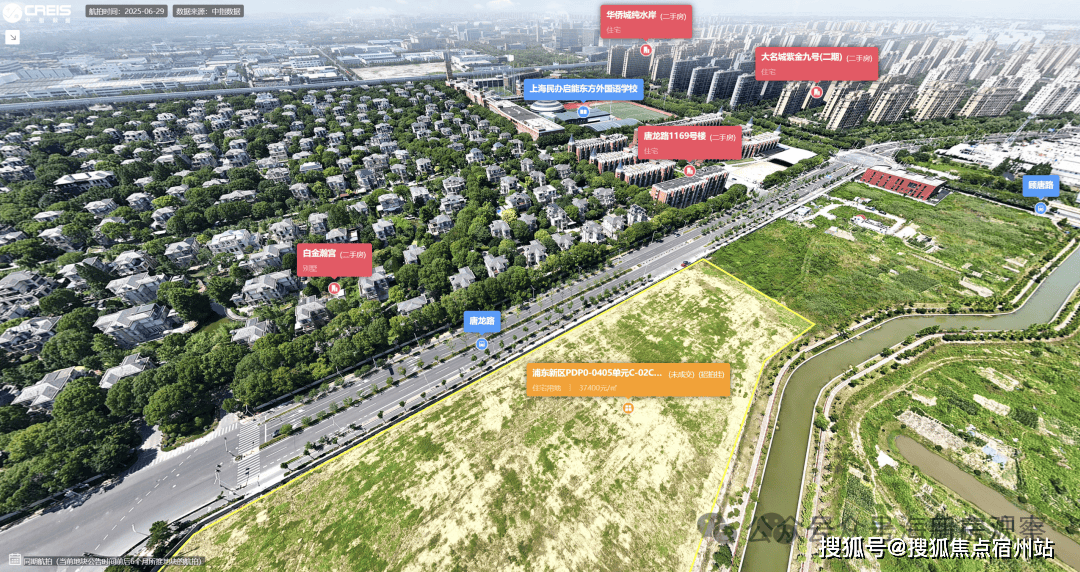 地块位于唐镇新市镇核心区域,紧邻张江科学城,地理位置优越、区域路网完善。目前,地块周边已配置阳光天地、恒生万鹂、浦发唐城印象天地等多个高品质商业综合体。