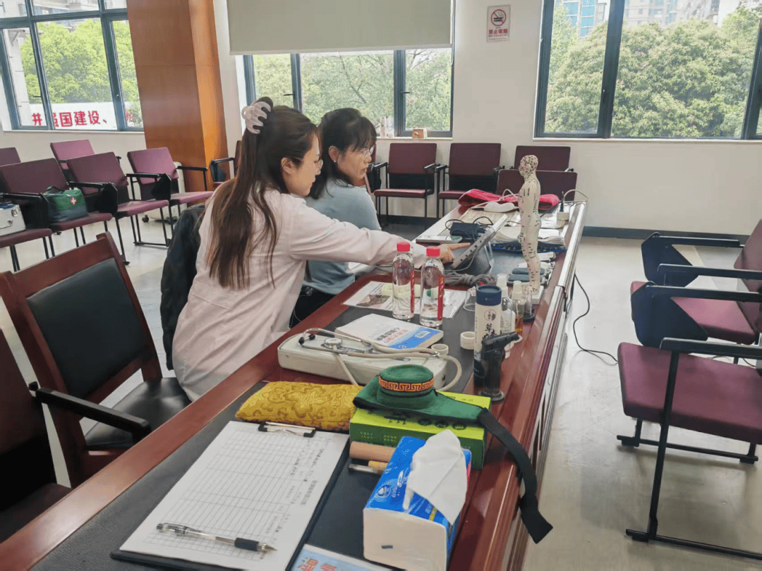本次义诊紧扣职工日常健康痛点,服务实用又贴心。现场免费测血压,通过脉诊、舌诊、面诊、手诊精准辨识体质;聚焦女性妇科健康、职场颈椎腰椎不适,以及失眠、肠胃病、慢性病等常见问题,提供针灸、推拿、艾灸、拔罐等专业中医理疗,还现场科普养生小技巧、教授实用保健穴位,让大家轻松掌握居家调理方法。