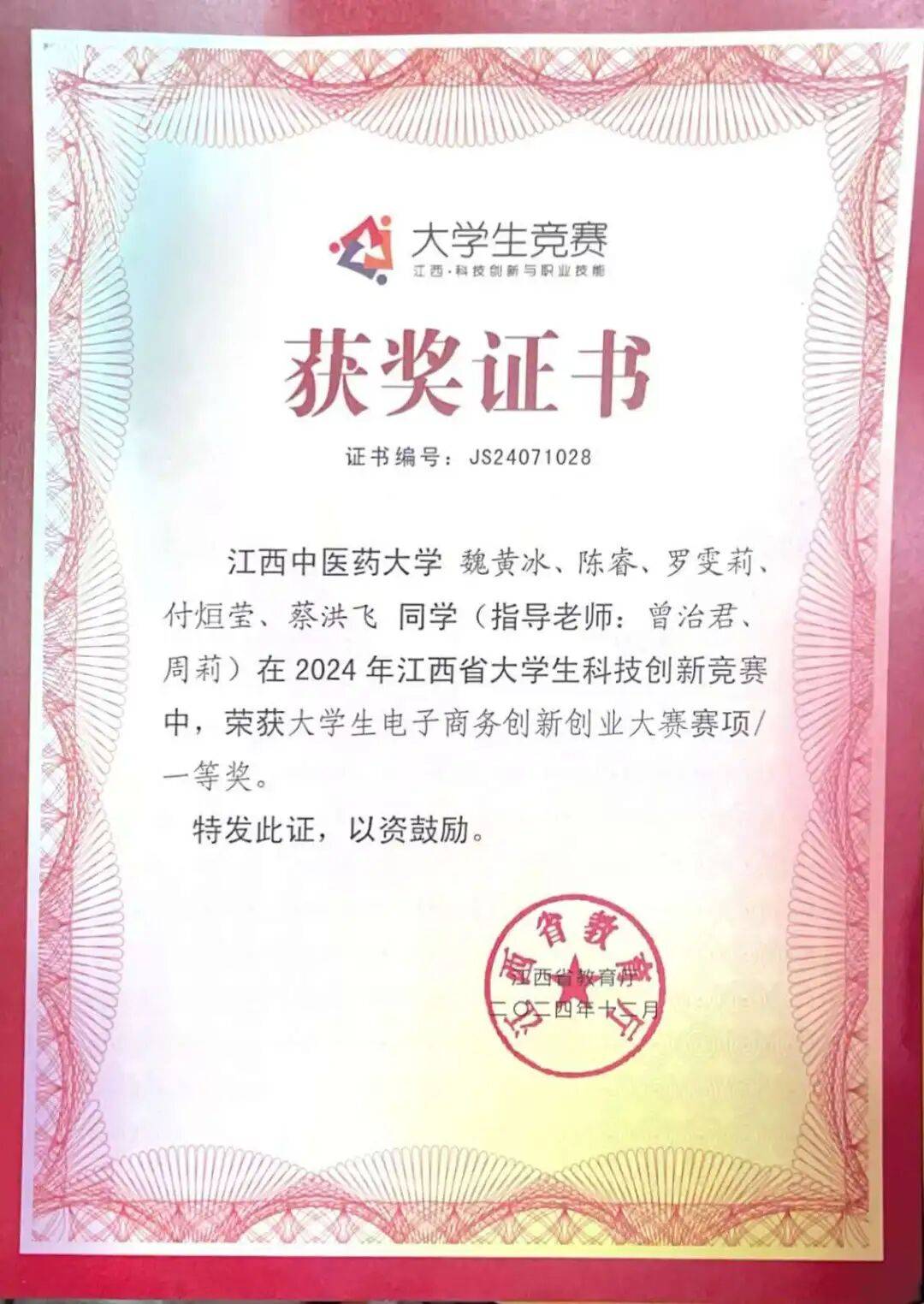 12.荣获2025年江西中医药大学大学生创新大赛高教主赛道本科生创意组金奖