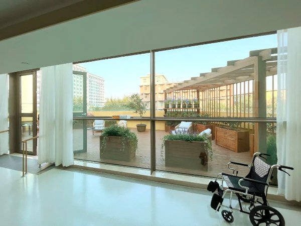 ❐ 设施亮点:地上共10层,功能分区明确,1-4层为医疗配套空间,5-10层为186间养老房间,楼顶设空中疗愈花园,为长者提供休闲放松专属区域。社区周边设有停车场,方便子女探望;一层为接待大厅和医疗中心,二层为琴棋书画娱乐健身会所,配套设施完善,兼顾医疗、文娱与生活需求。