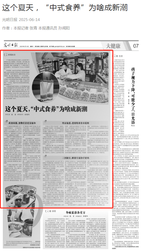 2025年6月,光明日报刊发《这个夏天,“中式食养”为啥成新潮》一文中,报道我院传统医学科主任医师傅慧婷关于药膳食疗的观点。