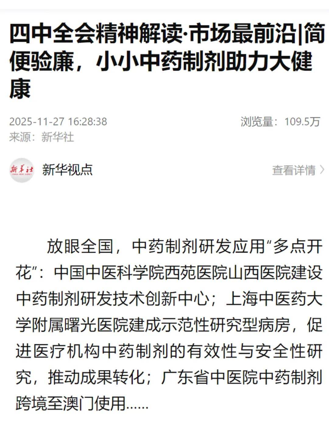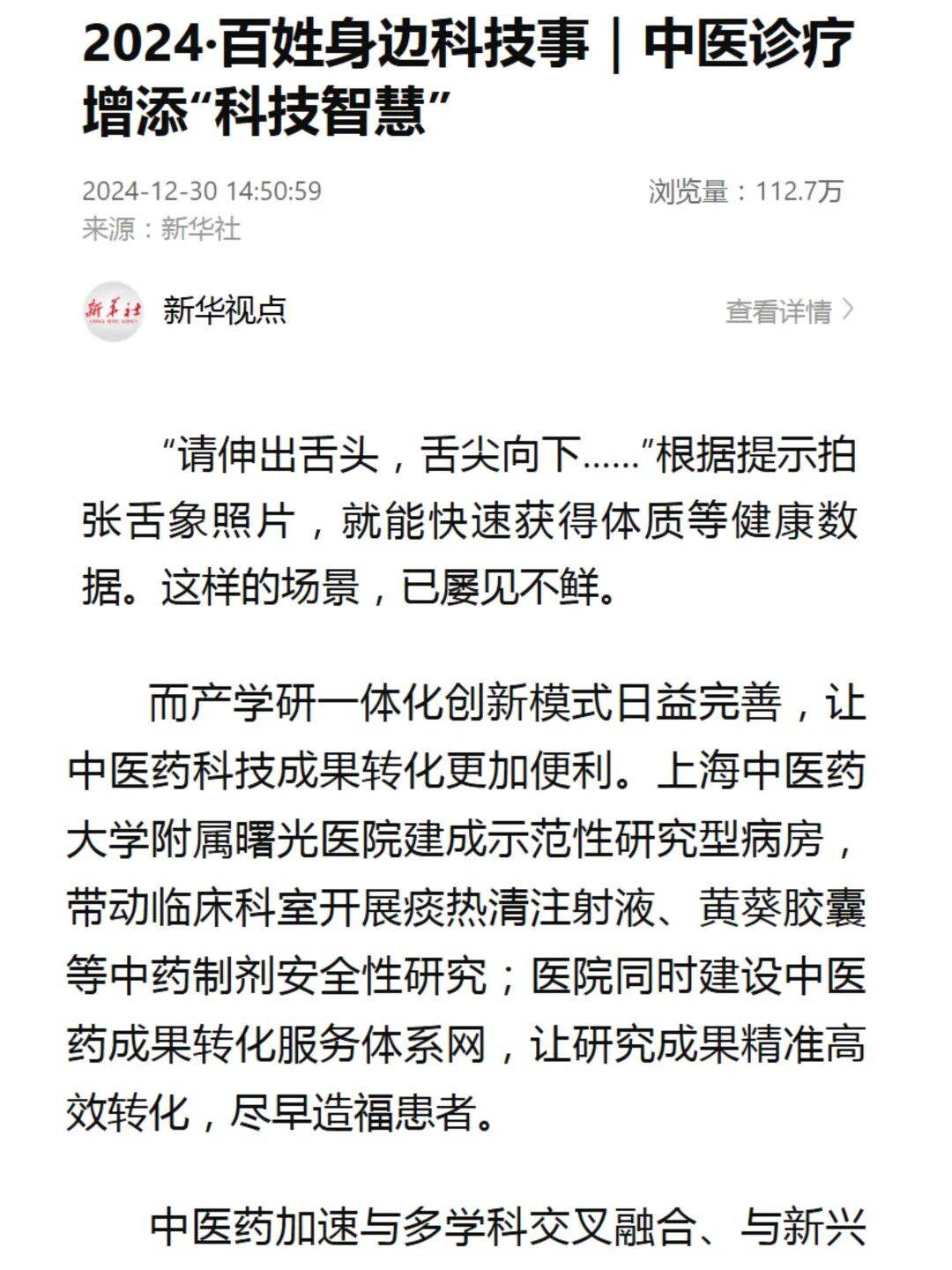 新华社以《四中全会精神解读・市场最前沿 简便验廉,小小中药制剂助力大健康》和《2024・百姓身边科技事|中医诊疗增添“科技智慧”》为题,聚焦我院中医药科技创新与成果转化实践。报道累计阅读量超200万次,在全国主流舆论场引发广泛传播与积极反响。