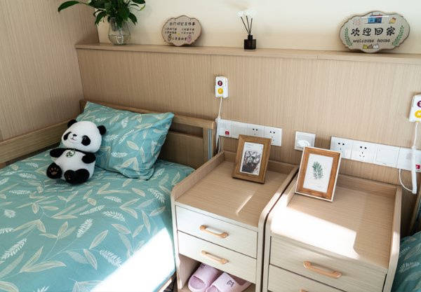 ▷ 设施配置 □ 规模:普亲长辛店老年养护中心建筑面积4000平米,配备电梯门禁、24小时监控、智能护理床、一键呼叫系统;□ 安全细节:卧室家具无尖角、适配轮椅使用,防滑静音地胶;□ 配套设施:康复训练设备、老年娱乐健脑器材,24小时中央热水。