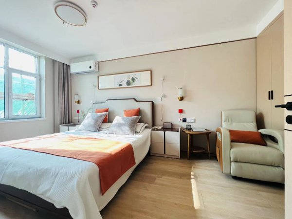 □ 配套设施:北京市通州区三乐康复老年公寓总占地面积46800平方米,建筑面积约26000平米,整体规划科学合理,设置标间、套间等各类房型共400余间(套)。房间内部配套完善,独立卫生间、24小时热水供应、液晶彩电、简易小厨房及全套厨具、冰箱、空调、洗衣机等生活必备设备一应俱全;同时配套衣柜、床头柜、适老床具、写字桌、沙发、古木茶几等家具,兼顾实用性与舒适性。纯净饮用水直接入户,宽带网络全面覆盖,冬季采用地暖供暖,居住体验舒适宜人。园区全域铺设防滑地板,走廊、浴室、恭桶旁均安装防护扶手,无障碍设施完备。此外,多功能厅、宴会厅、阅览室、书画室、台球室、麻将室、老年KTV、健身房等室内活动场所应有尽有;室外规划二十多亩垂钓园、采摘园及农家乐区域,绿化面积占比高达80%,为长者打造出自然惬意、宜居舒适的养老环境。
