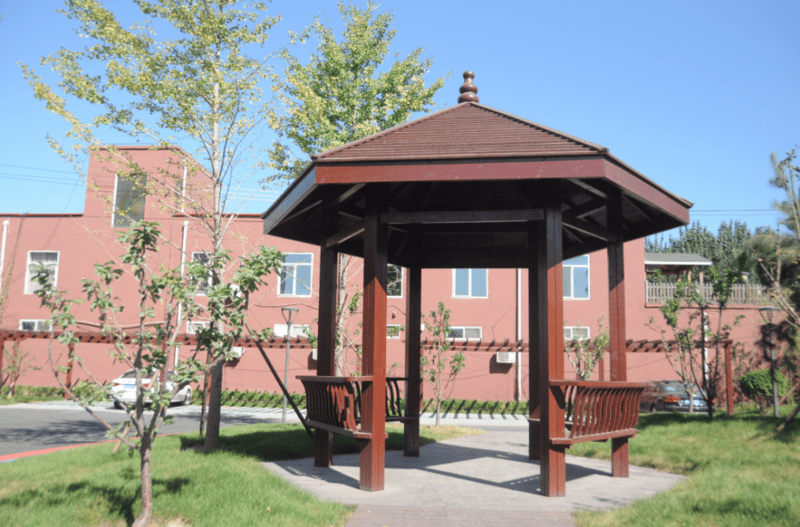 ◵ 设施特色:主楼共三层,功能分区明确,二层、三层为病房区,一层为办公及活动区域。整体设计融入中国古典园林特色,小桥流水、花台鱼池错落其间,景致雅致,打破传统医院冰冷氛围,宛如疗养院,让长者在温馨环境中休养,缓解身心不适。